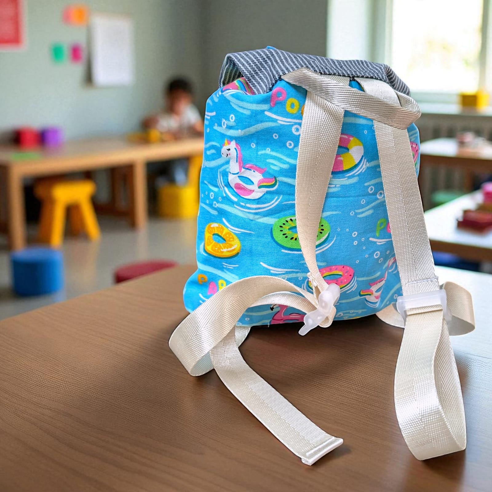 Bright, soft, and fun – perfect for kids aged preschool to 5 years. It features a Velcro flap closure, comfy adjustable straps, and enough space for toys, snacks, or books. Great for school, playdates, or little adventures!