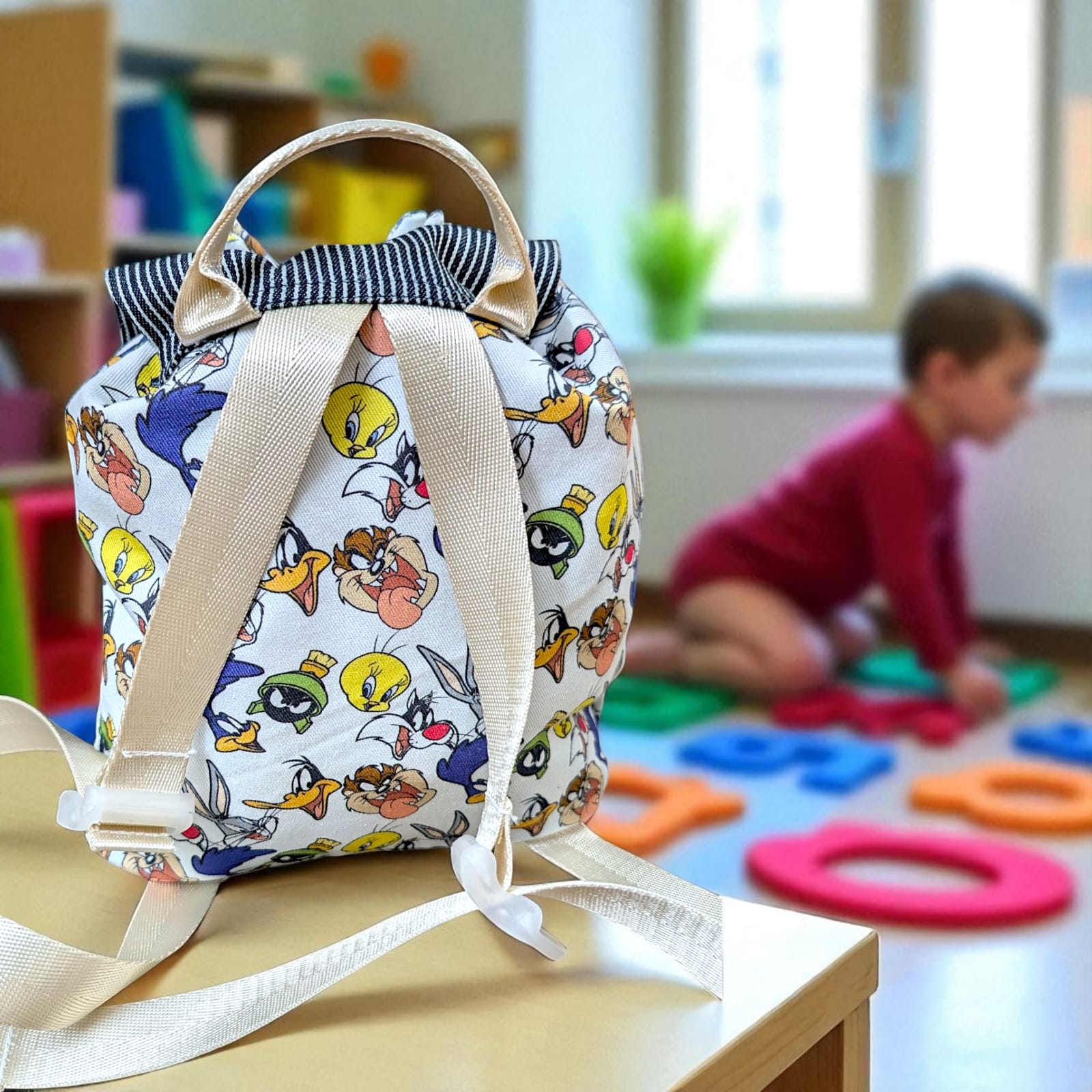 Bright, soft, and fun – perfect for kids aged preschool to 5 years. It features a Velcro flap closure, comfy adjustable straps, and enough space for toys, snacks, or books. Great for school, playdates, or little adventures!