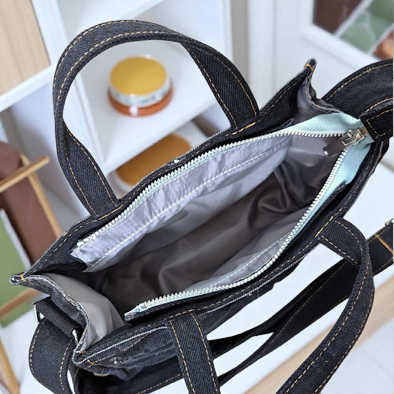 Elevate your style with the Aqua Denim Casual Bag — a perfect blend of fashion and function. Featuring one spacious main chamber with a chic pant-style inner pocket, it offers both style and practicality. Designed with a short handle and adjustable long belt for versatile carrying.