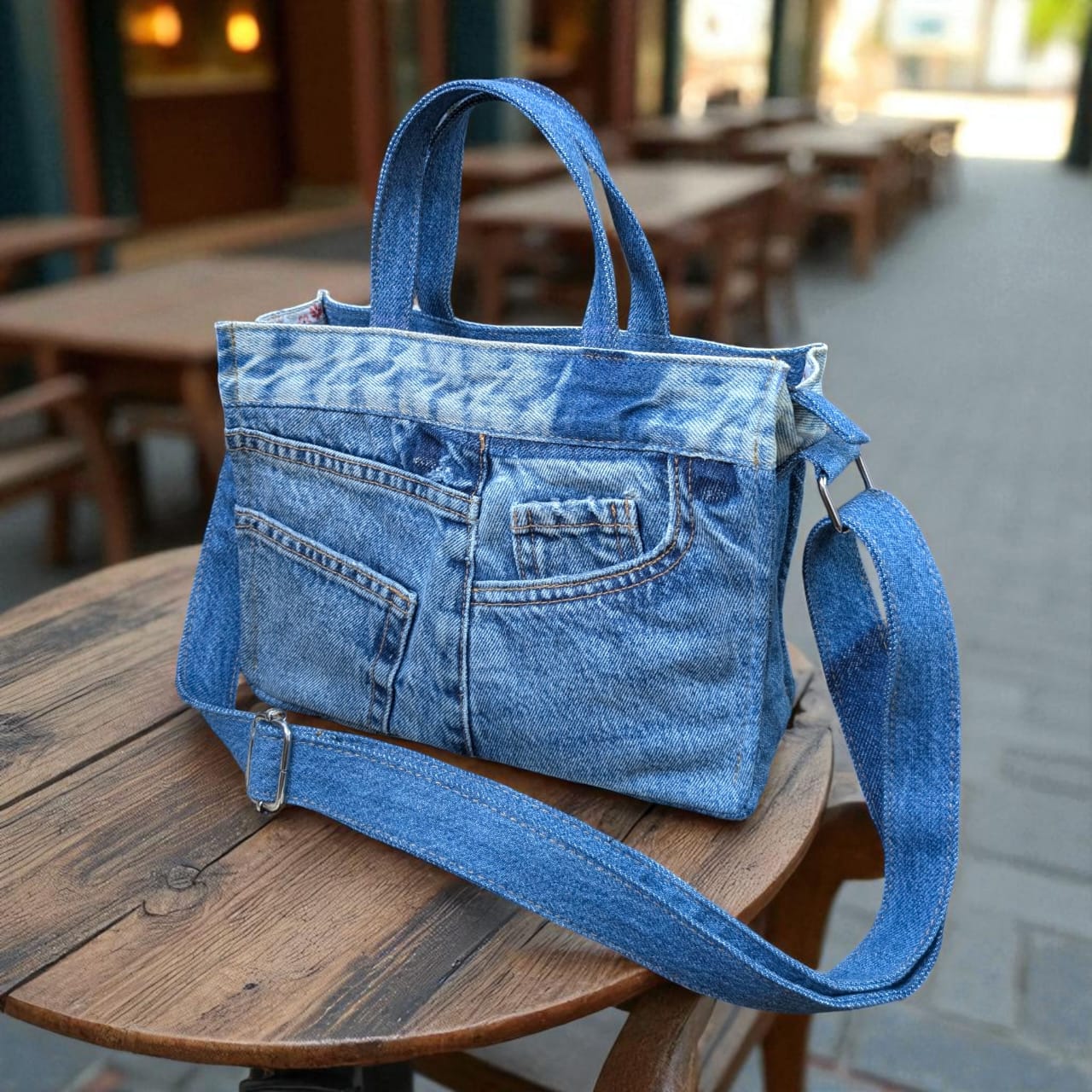 Elevate your style with the Aqua Denim Casual Bag — a perfect blend of fashion and function. Featuring one spacious main chamber with a chic pant-style inner pocket, it offers both style and practicality. Designed with a short handle and adjustable long belt for versatile carrying.