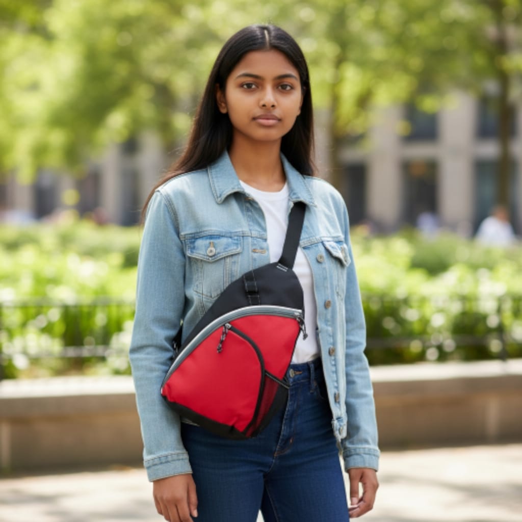 Carry your essentials with confidence using this export-quality chest bag designed for modern convenience. Featuring an adjustable strap for a perfect fit, it combines functionality with lightweight durability. The dual zippered chambers keep your belongings organized and secure, while the front mesh pocket provides quick access to frequently needed items. Three attachment loops let you clip pens, keys, or small accessories exactly where you need them. Built to last, this washable bag maintains its pristine appearance through regular use, making it the practical choice for daily adventures, travel, or work. Style meets substance in every detail.