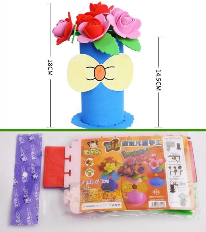 Unleash your child's creativity with this colorful DIY EVA Foam Flower Vase Craft Kit!