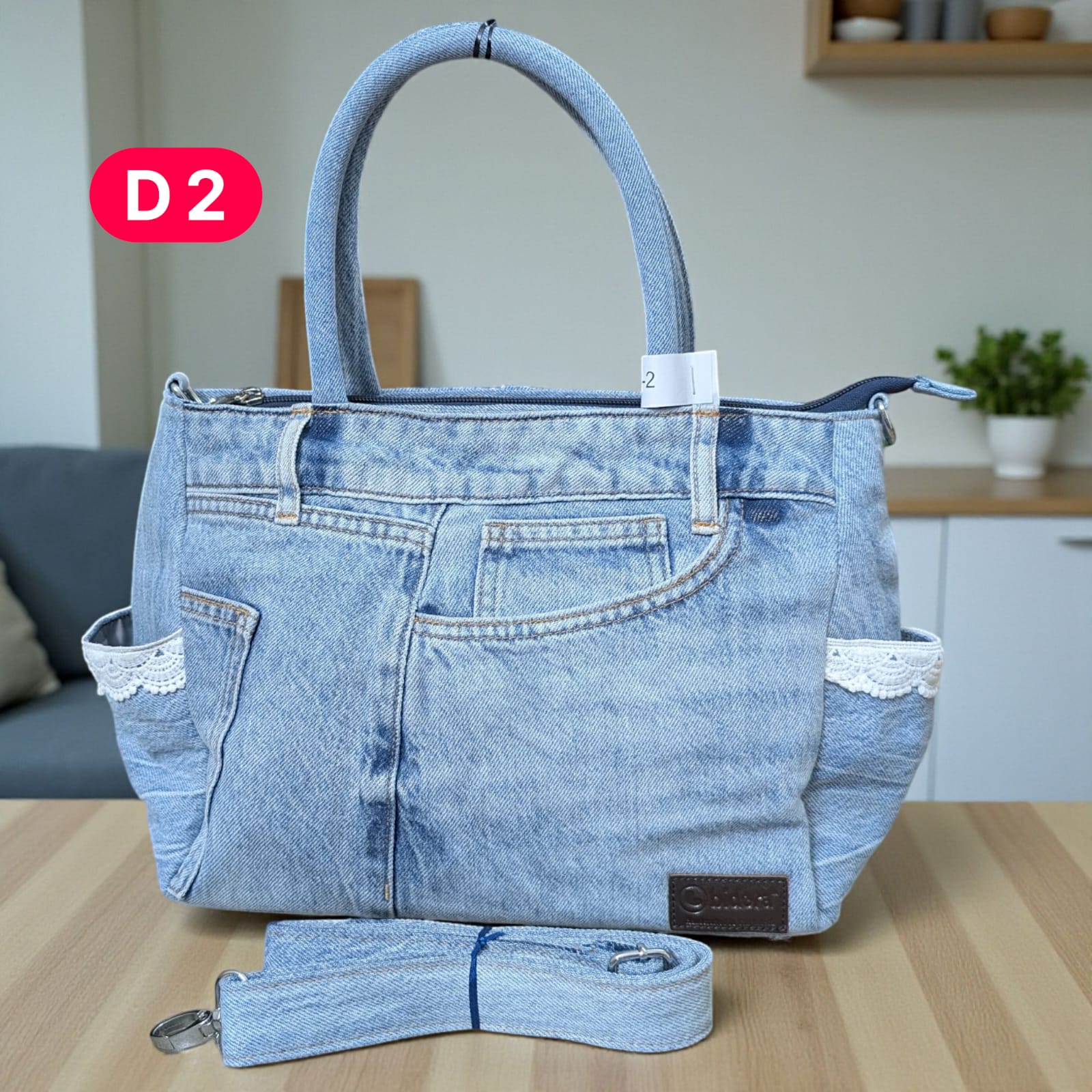 This Vintage Denim Daffodil Bag is perfect for office, varsity, or daily outings. It has a large spacious chamber with a small open pocket and a side chain pocket inside. Outside, there are two side pockets for quick access items.