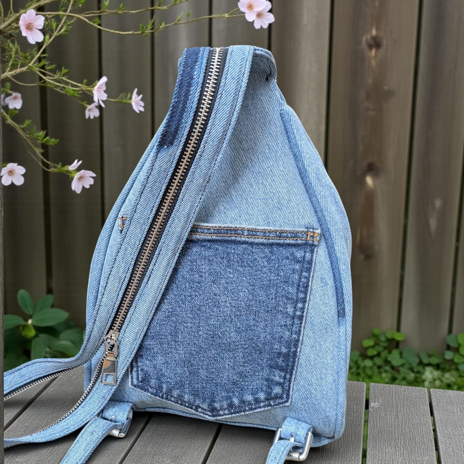 Introducing KakaTushi—the denim backpack that turns heads with its bold, unconventional design. This single-chamber pack features eye-catching patchwork detailing on the front and a stylish open jeans pocket on the back for quick access. Inside, a compact zippered pocket keeps essentials organized, while an exterior zippered pocket adds extra storage. But here's where it gets distinctive: the shoulder strap features an innovative chain mechanism that reveals two convertible belts, allowing you to carry it as a traditional backpack or switch up your style. Perfect for those who refuse to blend in, KakaTushi combines functionality with fashion-forward flair that sets you apart from the crowd.
