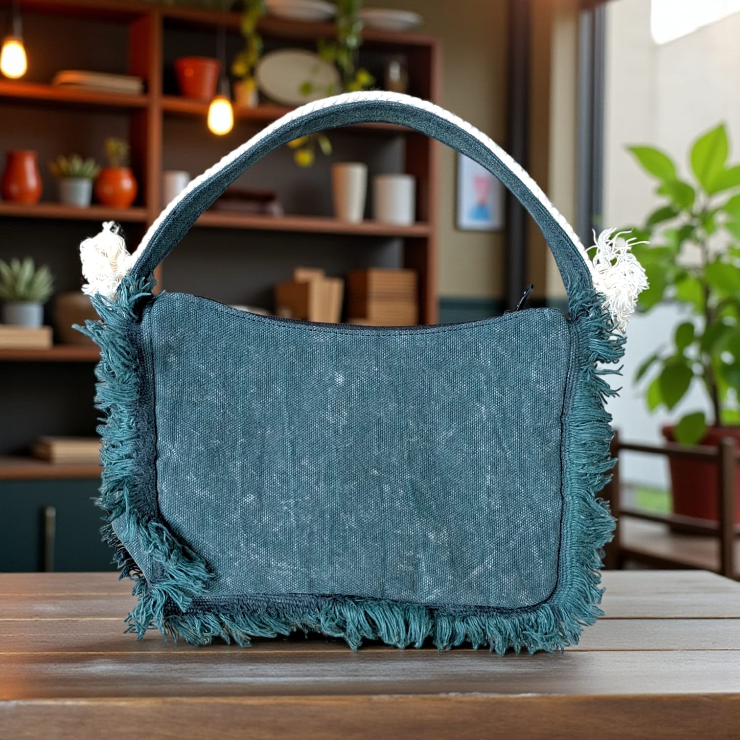 This Denim Bag is designed to give your everyday look a stylish yet practical edge. Made from recycled denim with a unique hand paint art.